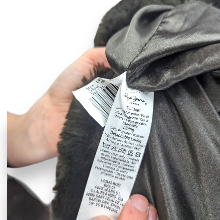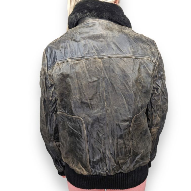 Pepe Jeans Vintage Fur Collar Brown Goat Leather Jacket Women Size XL