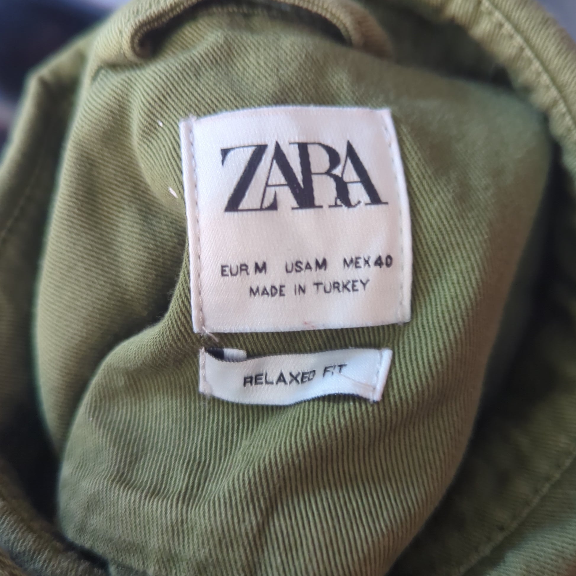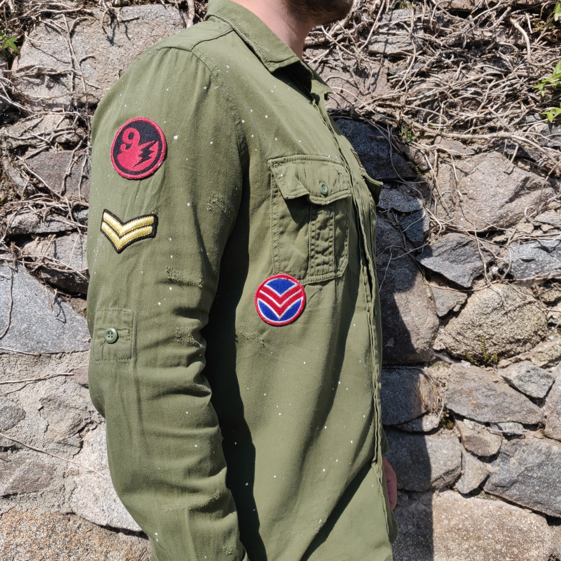 Zara Military Green Long Sleeve Patches Paint Splatter Design Over Shirt Men Medium